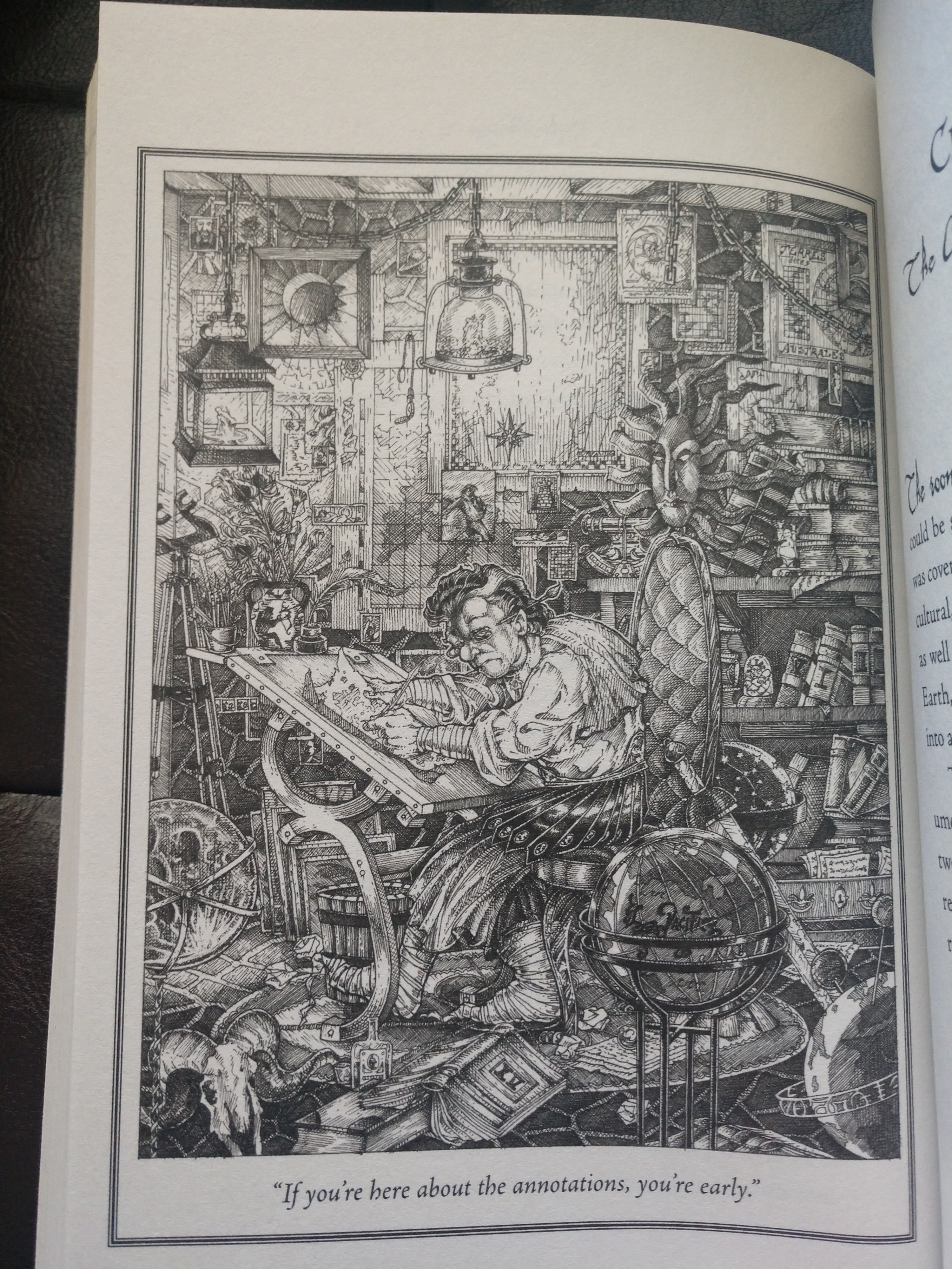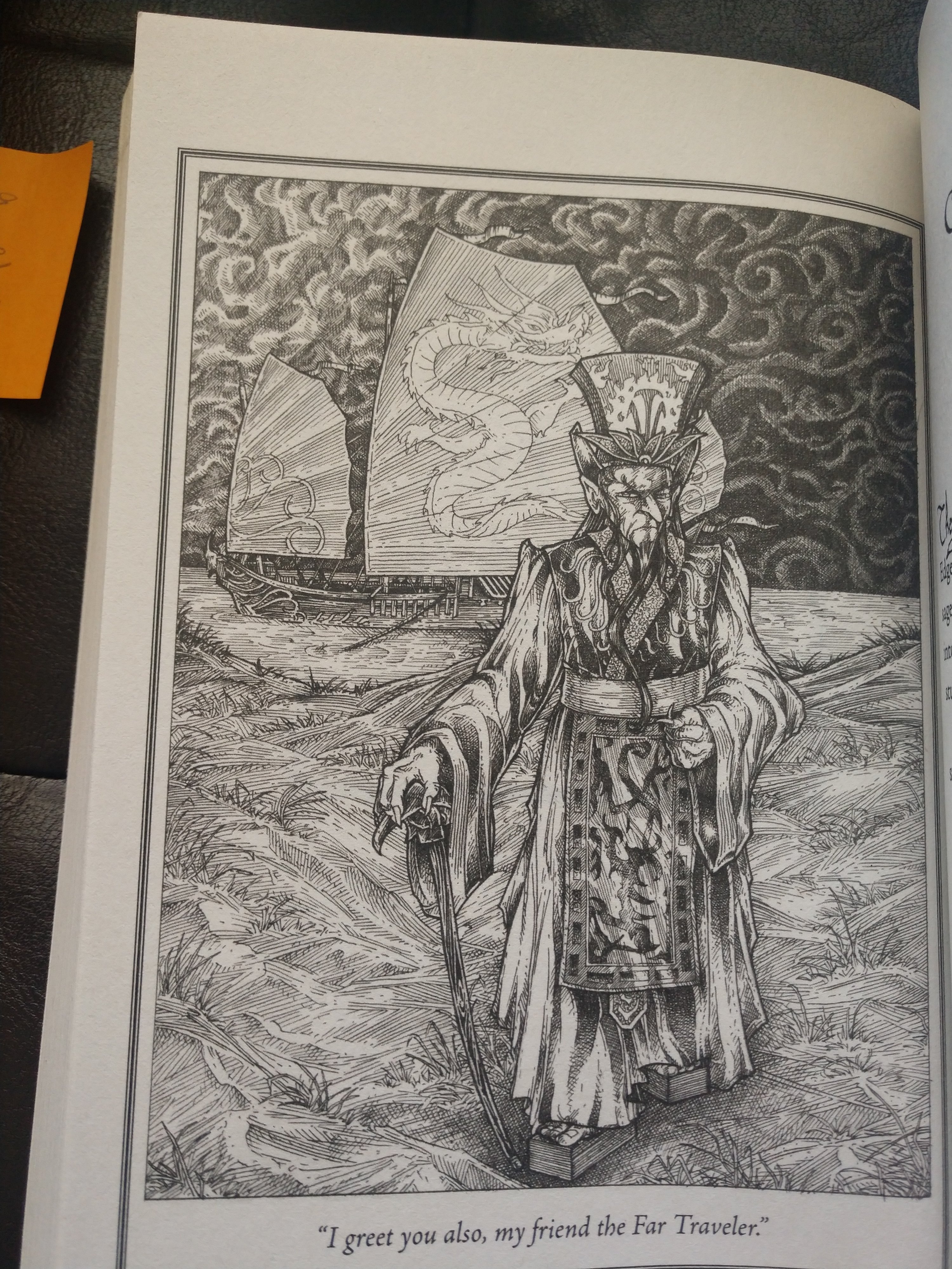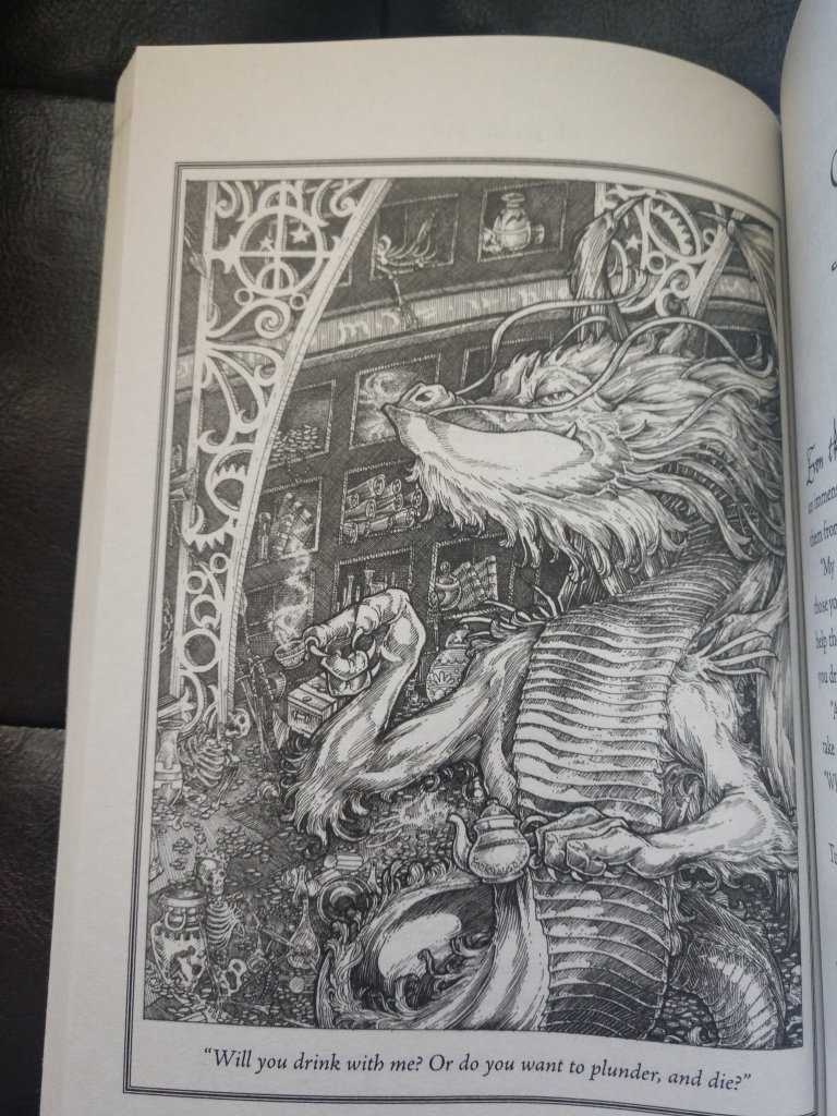 The book is filled with the maps of every known fantasy land within the Archipelago, though it is implied that there are unknown lands not included within its pages. Unfortunately, most books are not written in English, which makes it impossible for all but the well-trained linguistics to read it, though “Here, There Be Dragons” is inscribed on every page, somehow allowing John to take those root words and expand his minimal linguistic training to read the annotations that give them directions.