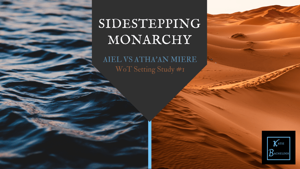 I decided to compare the Atha’an Miere and the Aiel for this particular study, as neither of them are ruled as a monarchy (at least, not in the traditional sense). Additionally, both cultures are isolated from the rest of the world, one on water, one on sand, and this isolation allows them to remain separate and distinct from the other cultures of the series.